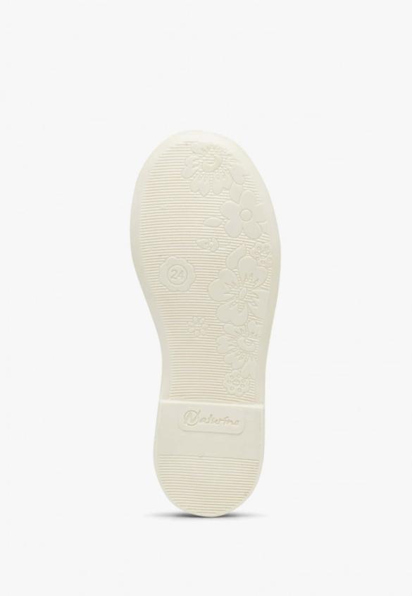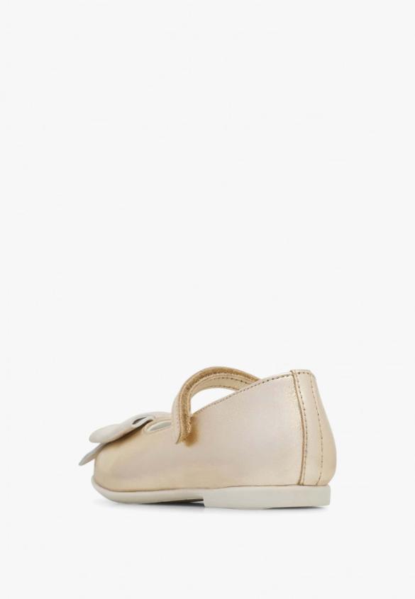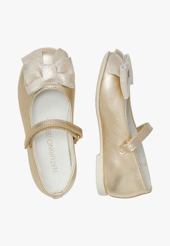 Linear and fit for a princess, these regal-looking ballerina flats are ideal for special occasions. The laminated leather upper makes the model sophisticated, embellished with an applique bow on the front that adds a glamorous touch. The strap fastening stabilises the foot. Rubber sole with non-slip bottom.Product Name: NATURINO ANABA