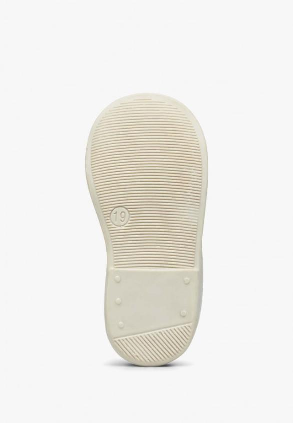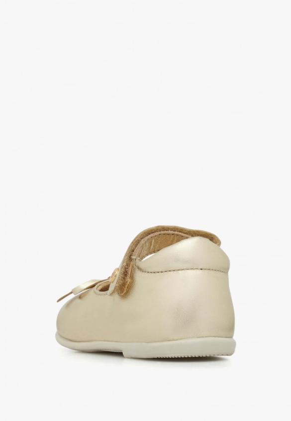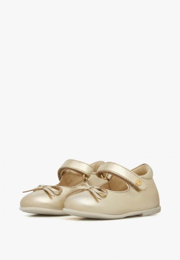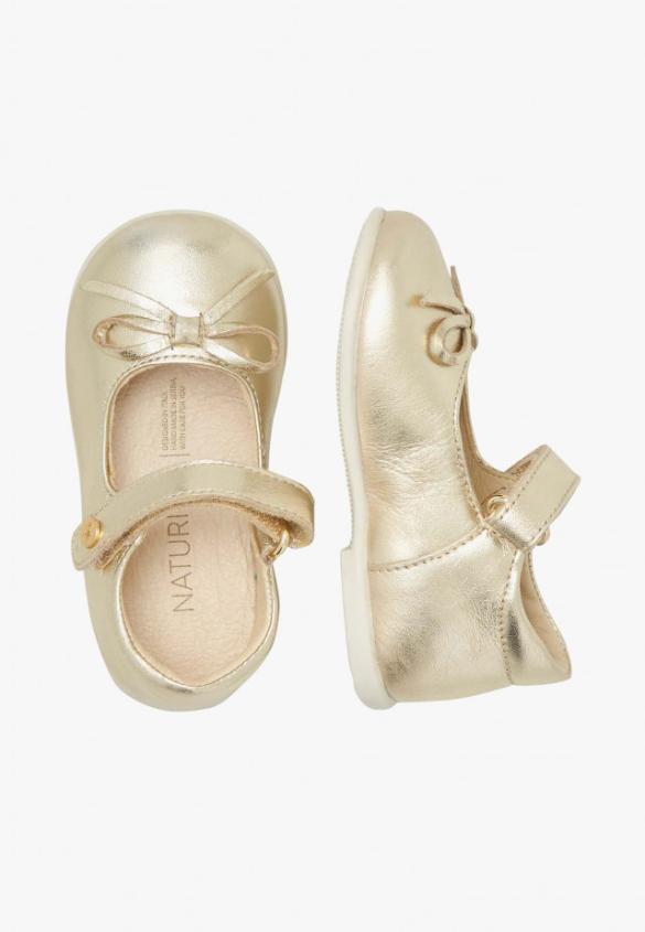 Bright and shiny, this ballet flats shines with its own light thanks to the soft laminated calfskin. The rounded shape with a bow at the neckline is complemented by a ankle strap fastening to adjust to all the little feet. Flexible white rubber sole, breathable leather insole.Product Name: NATURINO BALLET