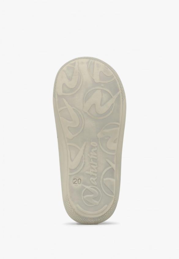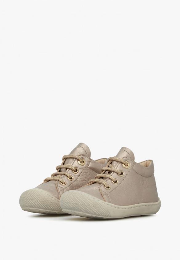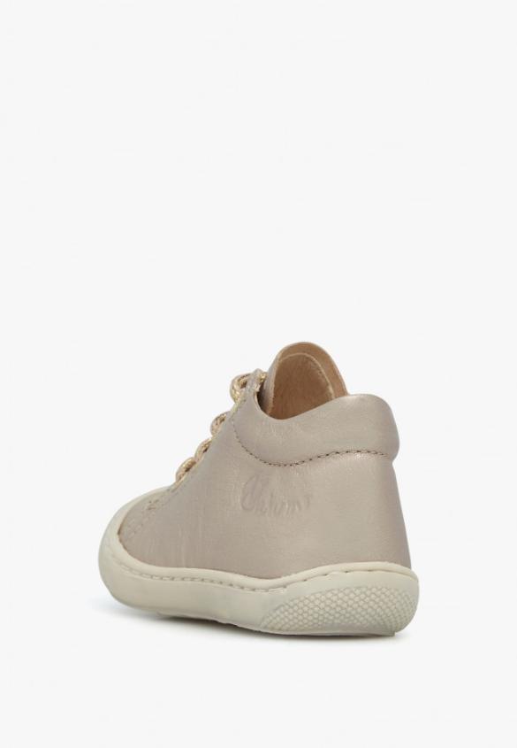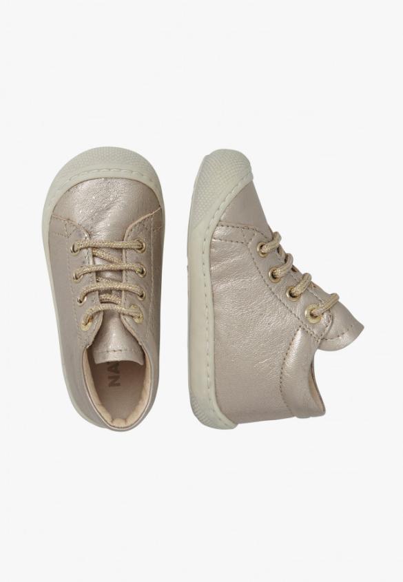 First steps shoes with platinum-plated metallic leather upper. The structure with supported heel is combined with leather lining, closure with lurex laces and non-slip rubber sole with reinforced toe.Product Name: NATURINO COCOON