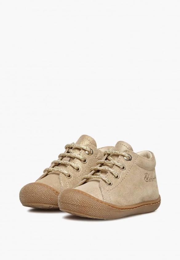 A perfect synthesis of functionality, style and playful allure, the Cocoon shoes are the favourite of the most delicate feet. The glittery suede upper is soft and flexible, complemented by lurex laces that ensure a custom fit. Lined in leather for perfect breathability, they have a soft rubber outsole that hugs the toe for uncompromising protection and grip.Product Name: NATURINO COCOON