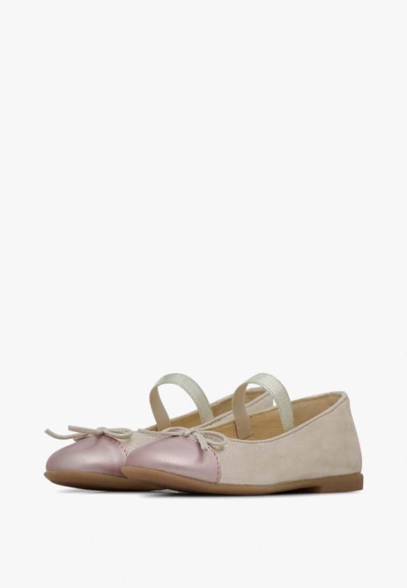 Ballet flat in laminated leather with a cloudy effect and toe in contrasting tones. Small bow on the opening and on-tone elastic strap. Leather lining and insole, thin rubber sole.Product Name: NATURINO CROISE’ TIP