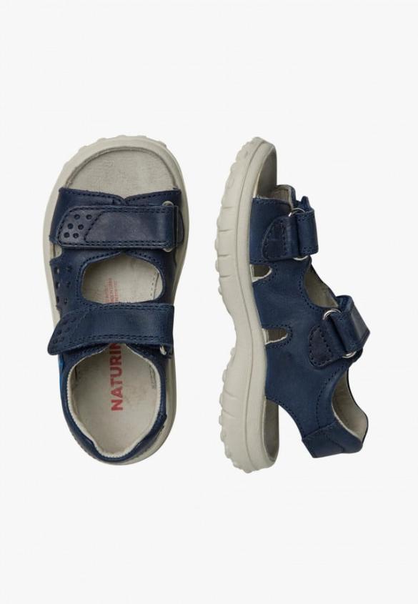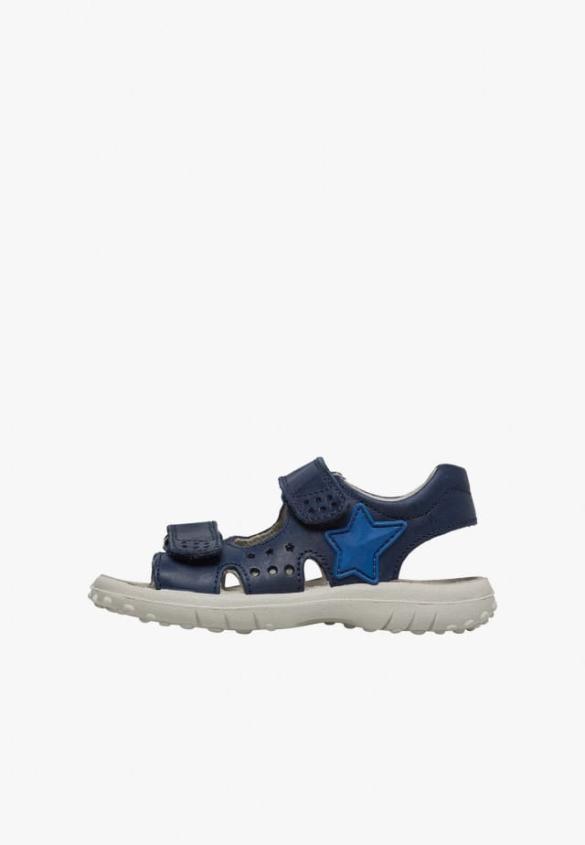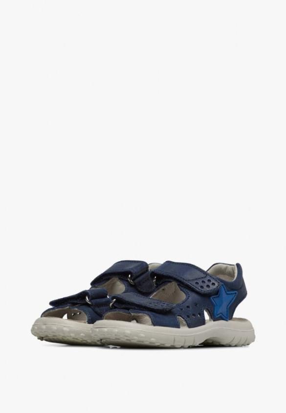 Open sandal with soft brushed calfskin upper. The construction features a double adjustable strap closure, side perforations and a three-dimensional rubberised star on the side. Leather lining and insole, rubber sole with custom tread.Product Name: NATURINO DOCK