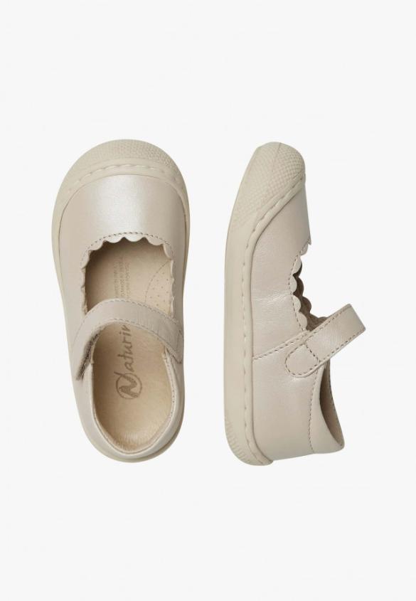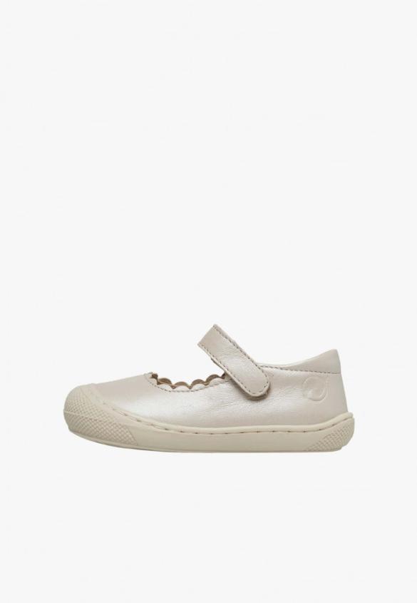 First steps ballet flats with structured heel and padded opening. The upper is made of pearlised nappa leather, with a shaped opening and adjustable band with strap. Leather lining and insole, rubber sole with reinforced toe.Product Name: NATURINO DORSIA