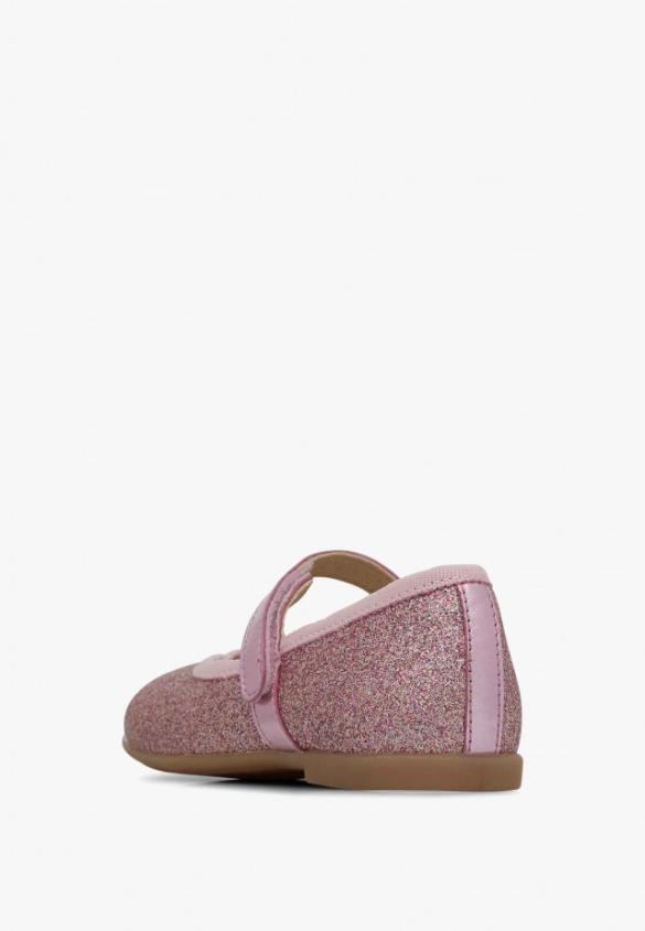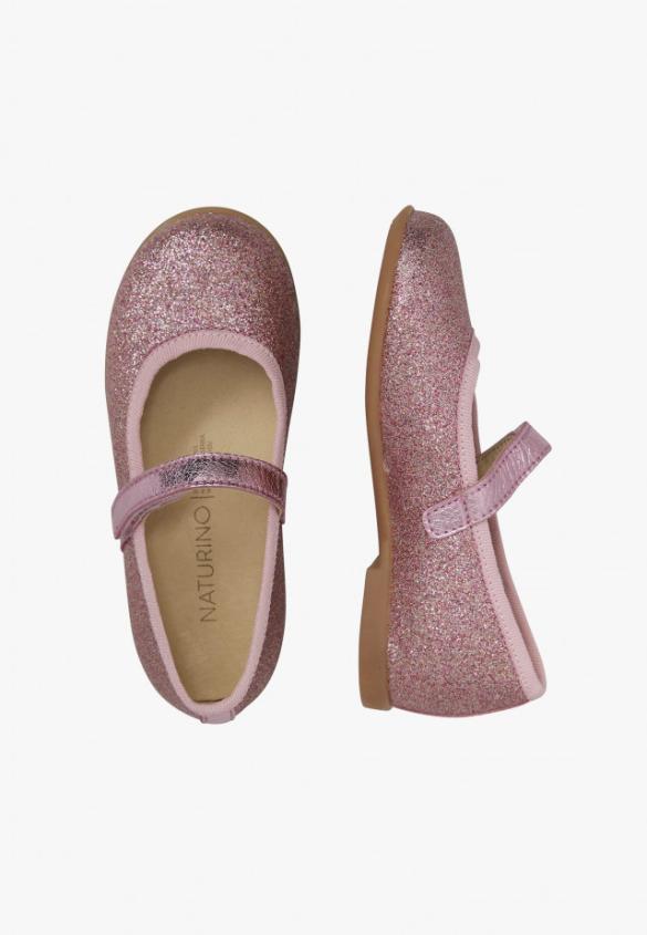 Ballet flats with glittery leather upper, with grosgrain on tone edge. The adjustable band with strap is made of laminated leather. Leather lining and insole, thin rubber sole.Product Name: NATURINO ELANA
