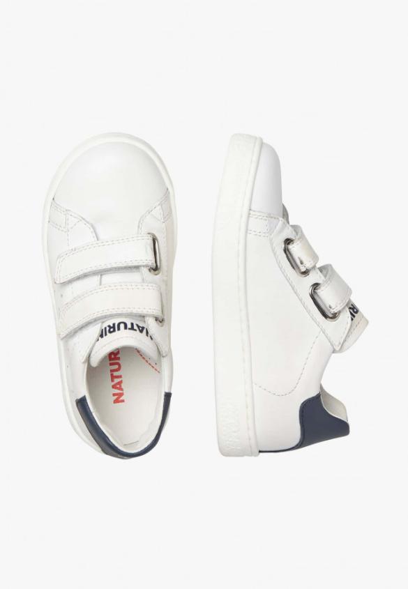 Minimalist sneaker in soft calfskin, embellished with side perforations and a contrasting heel tab. The construction is tailored to the most delicate feet, with double strap, leather lining and insole, rubber sole with non-slip design.Product Name: NATURINO HASSELT 2 VL.