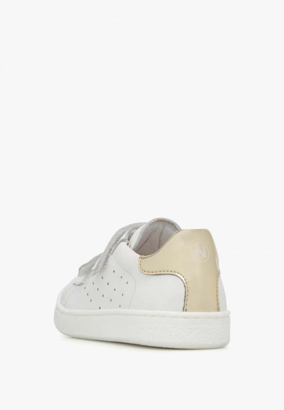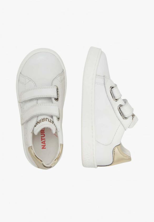 Minimalist sneaker in soft calfskin, embellished with side perforations and a contrasting heel tab. The construction is tailored to the most delicate feet, with double strap, leather lining and insole, rubber sole with non-slip design.Product Name: NATURINO HASSELT 2 VL.