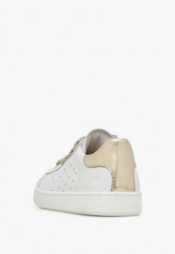 Minimalist sneaker in soft calfskin, embellished with side perforations and a contrasting heel tab. The construction is tailored to the most delicate little feet, with laces and internal zip for quick fastening, leather lining and insole, rubber sole with non-slip design.Product Name: NATURINO HASSELT 2 ZIP.