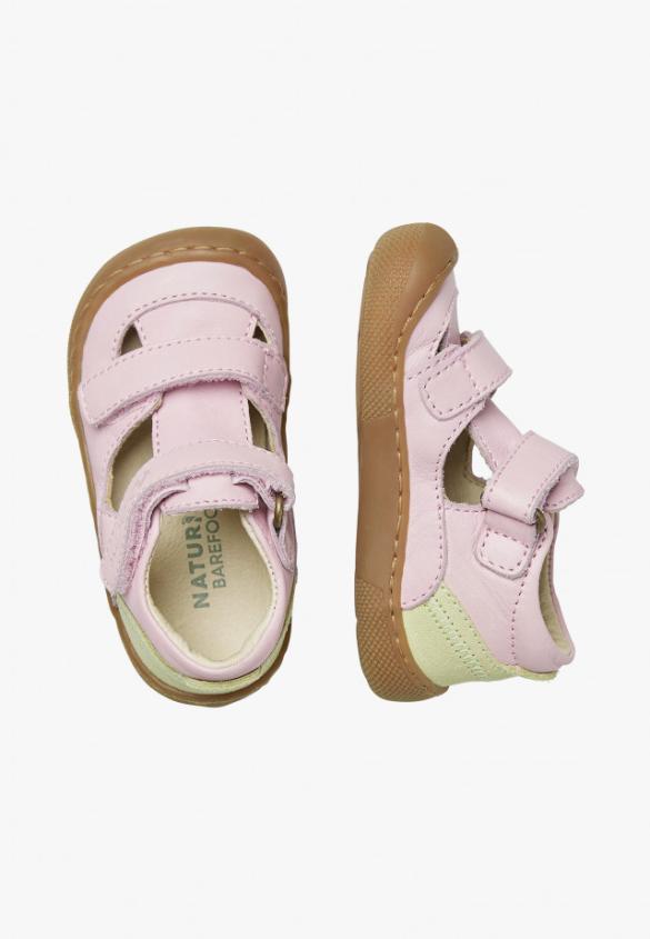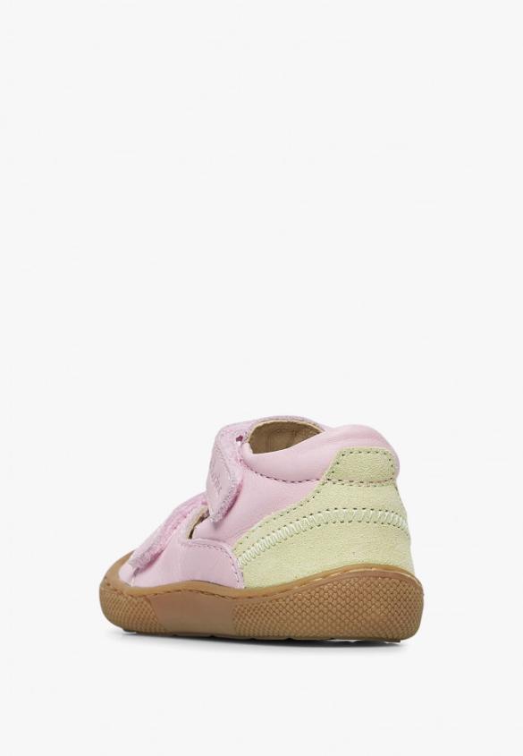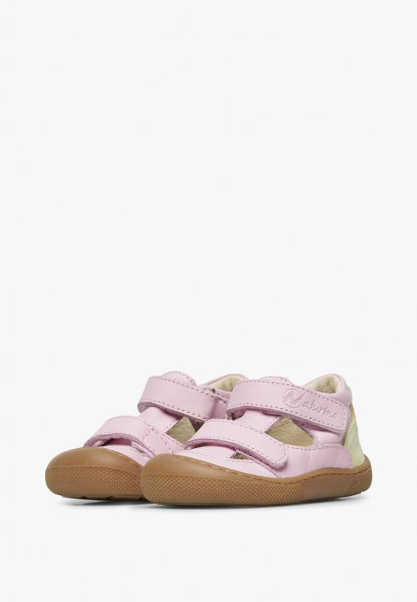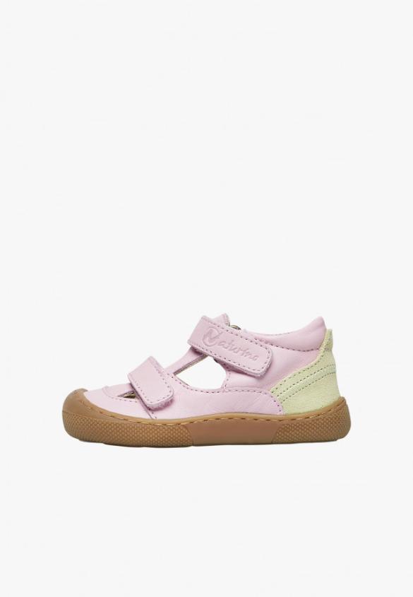 A summer full of adventures with these semi-open sandals; made of soft leather with suede heel, they have a special construction with padded ankle and reinforced heel, which supports the movement of even the youngest children. Lined with leather on the inside, they have a soft rubber sole that also supports the toes, for perfect support even when playing on the ground. The double strap fastening ensures a comfortable fit. Rubber sole with non-slip bottom.Product Name: NATURINO IRTYS