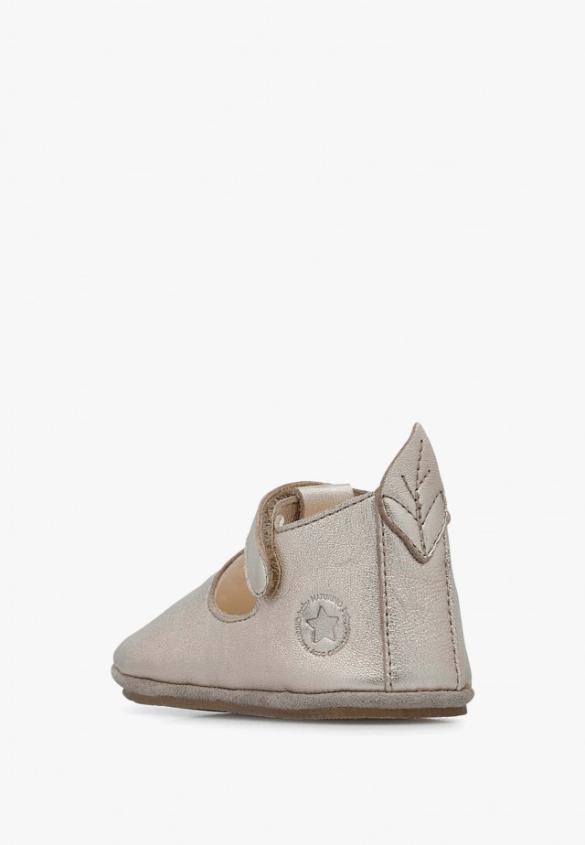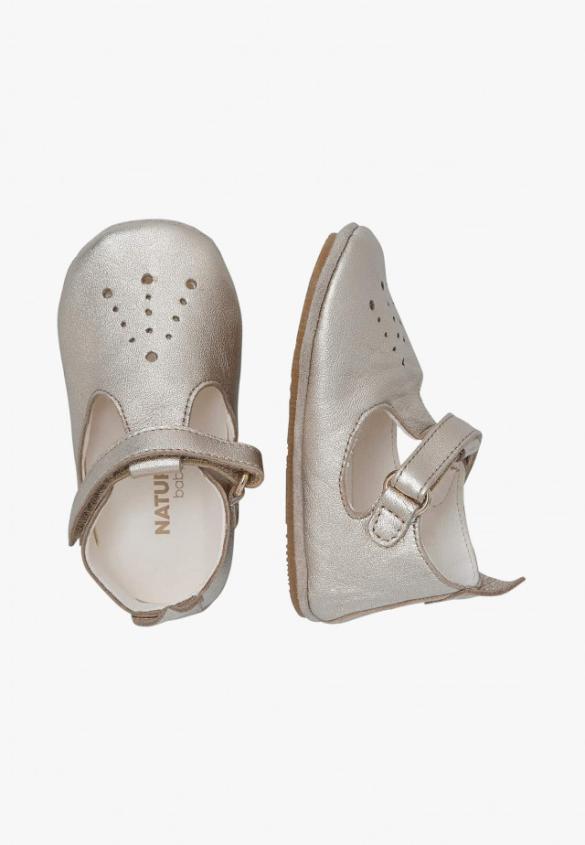 Super soft, fresh and super glam: the cradle shoes are the new must-have, thanks to the platinum nappa leather and the sandal-like shape with an ankle strap. The perforations and leaf detail on the heel add a delicate touch. Completely lined in leather, they have a flexible rubber insole to support the first movements.Product Name: NATURINO MUP 2