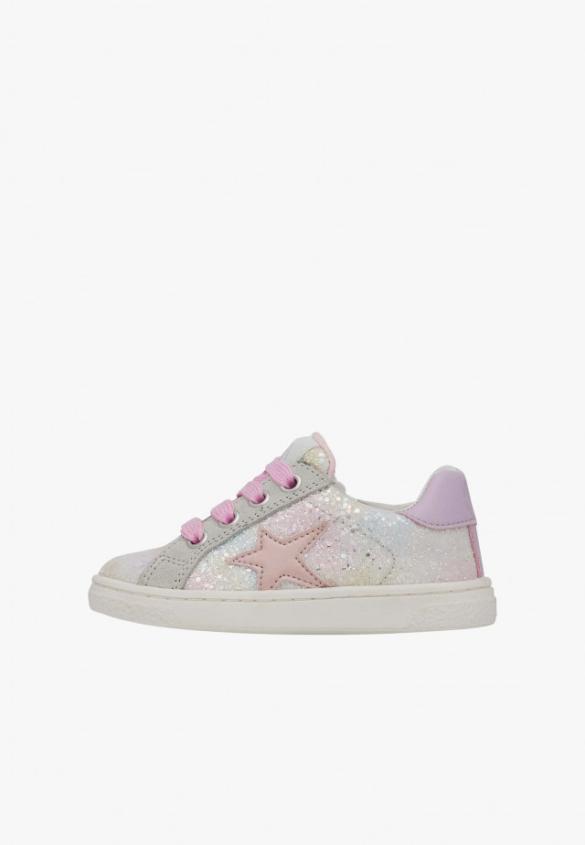 Sneakers with glittery, blended leather upper in pastel tones, completed with smooth, metallic leather details and suede. Lace-up closure and internal zip, leather lining, rubber sole.Product Name: NATURINO PINN ZIP.