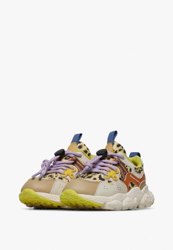 Sneakers made in collaboration with Flower Mountain. The upper is in technical fabric with leopard print, completed with contrasting faux leather inserts, with perforations and shapes. Lace-up closure and quick stop, contrasting eyelets on the tongue and side reinforcement, rubber sole with custom tread.Product Name: YAMANO 3 JUNIOR.